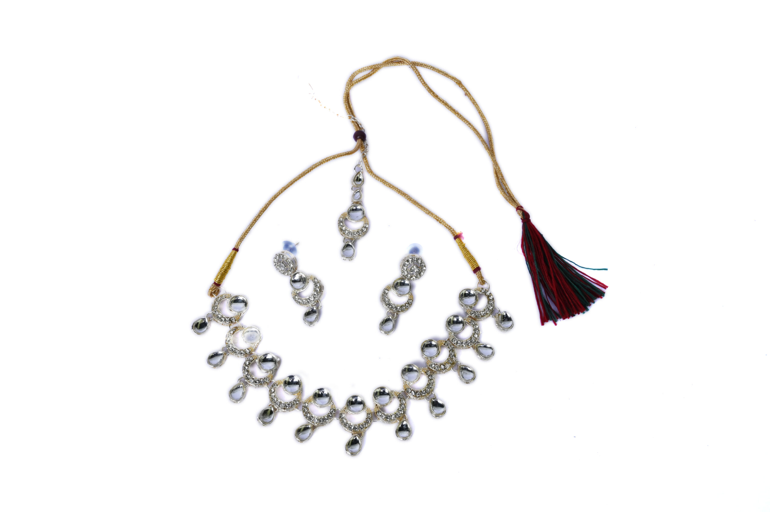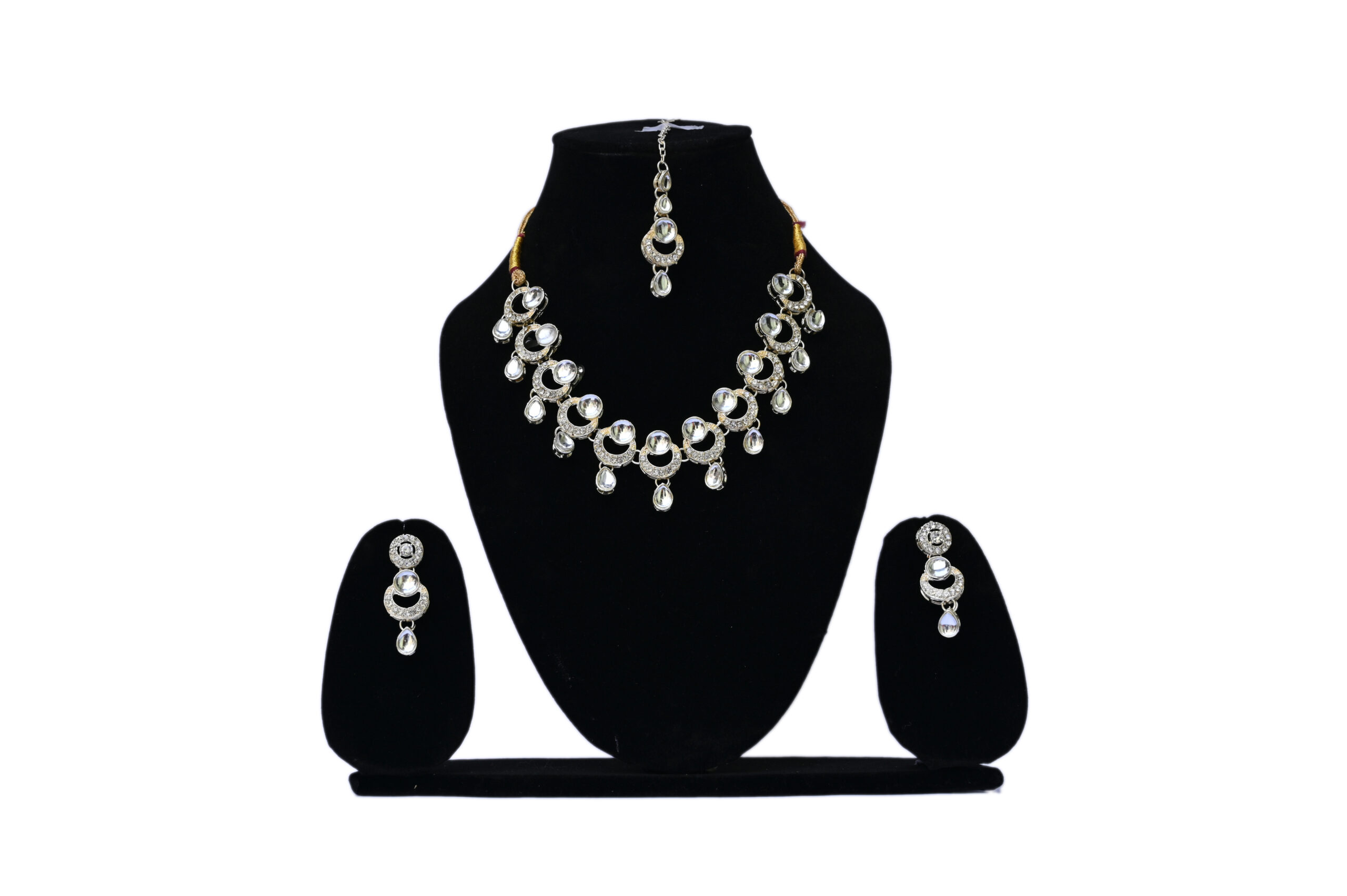 Add timeless elegance to your look with this beautifully crafted Kundan Necklace Set. Designed with sparkling kundan stones and delicate drop detailing, this set brings a royal and graceful charm to any outfit.